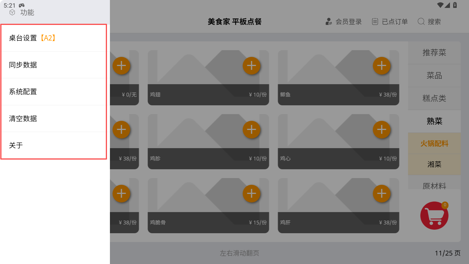 数据同步:当基础资料促销、存在促销、菜品图片及板式有修改等,需点“数据同步”使平板获取最新的数据。