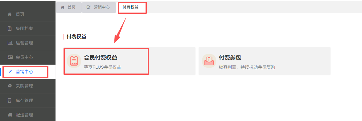 位置:【营销中心】->【付费权益】->【会员付费权益】
