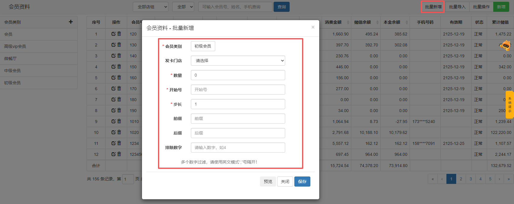 确认无误后点击【保存】,系统将按规则批量创建会员。