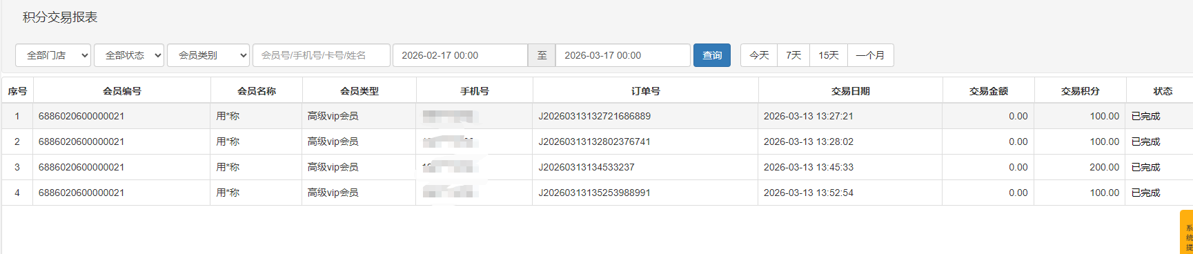 位置: 【会员中心】 -> 【积分商城】 -> 【积分交易报表】