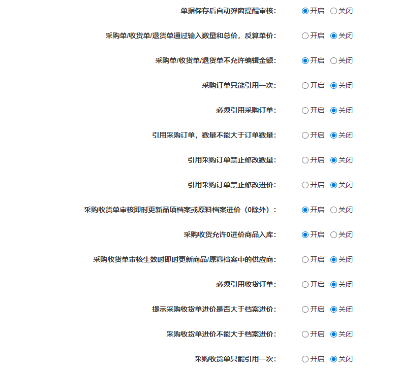 单据保存后自动弹窗提醒审核:控制采购单据保存后是否自动弹出审核窗口。
