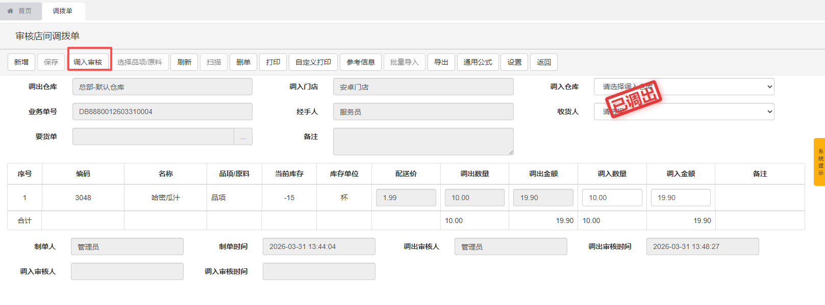 调拨单-调入审核
