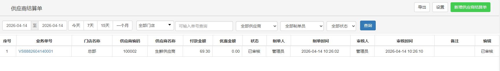 供应商结算单-列表