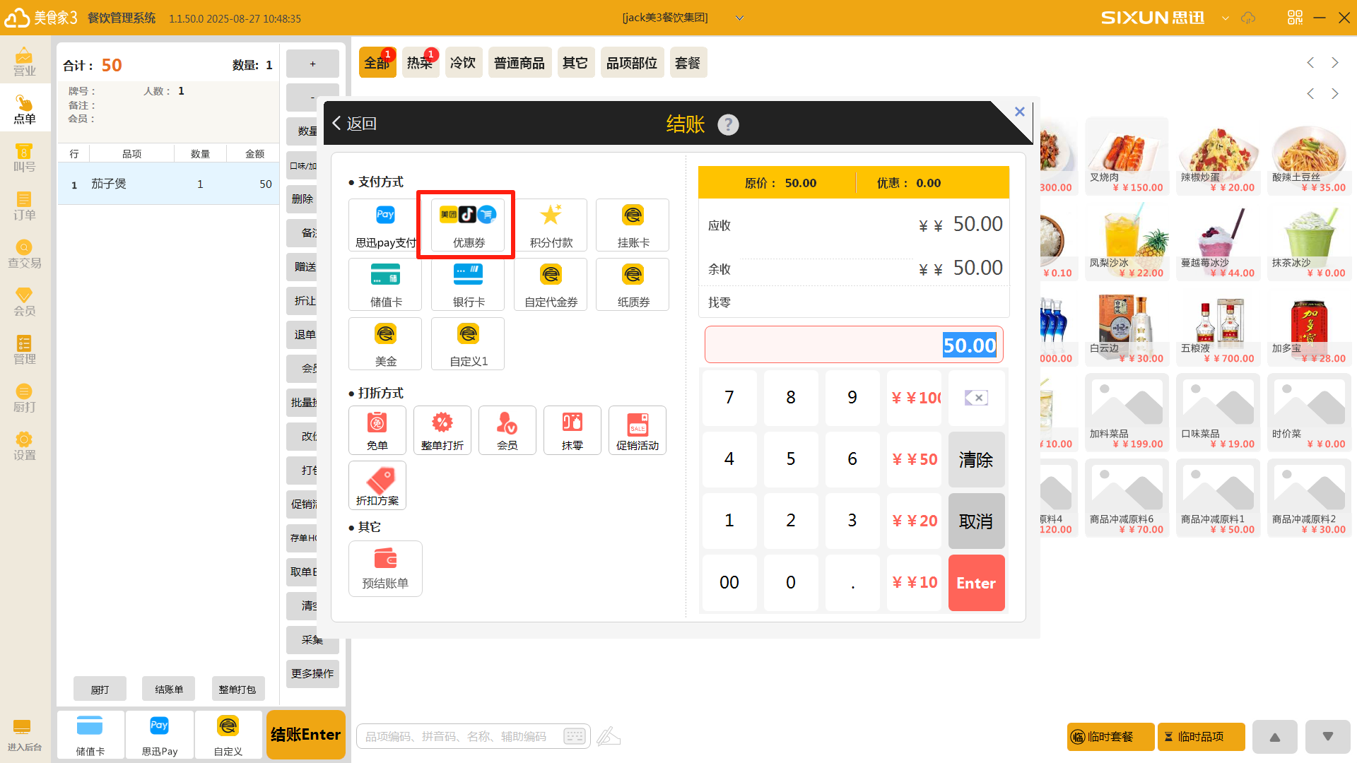 3.1 前台-设置-更多,开启【暂结】参数。(非暂结模式,不支持使用团购套餐前置核券)
