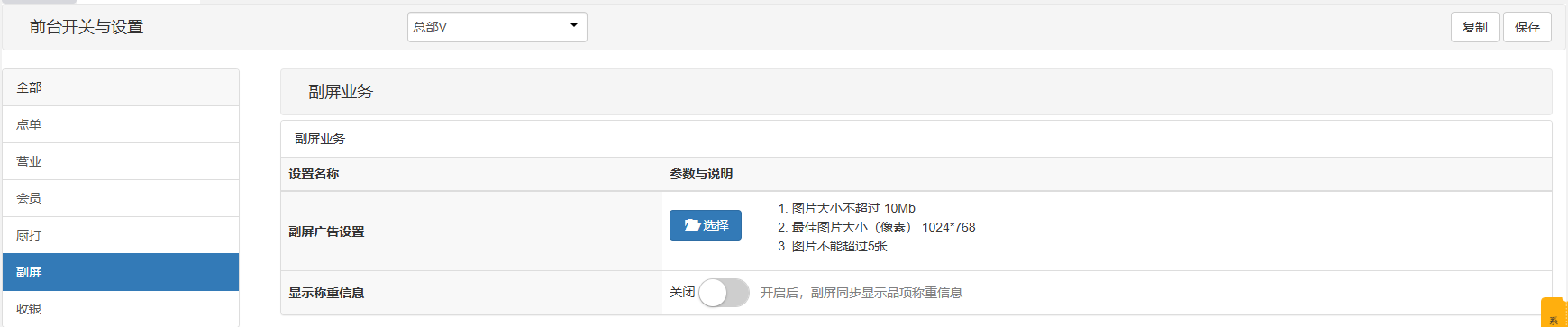 设置后,前台所有副屏会按照设置信息统一显示;