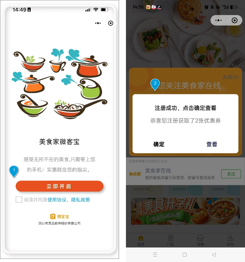 新用户首次使用微信授权登录并进入“微餐厅”小程序时,系统会引导其完成会员注册。
