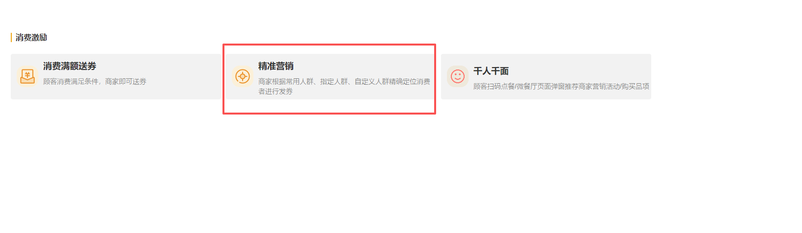 1、在后台营销中心——消费激励中选择“精准营销”进行创建方案。
