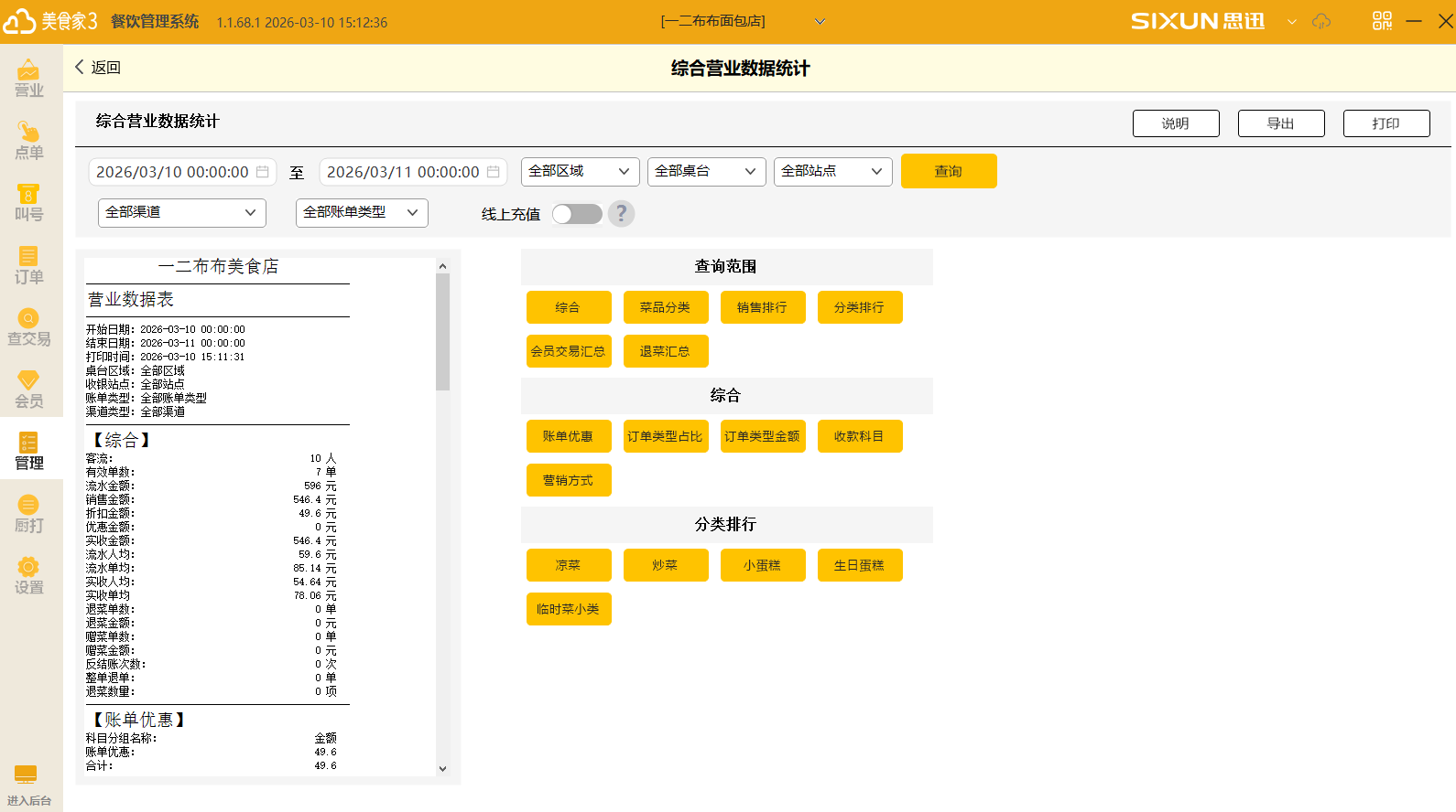 综合营业数据统计