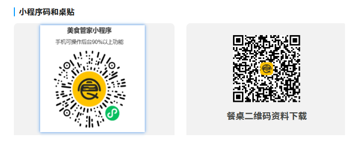 提供了”美食家管家”程序码、与餐桌二维码下载。