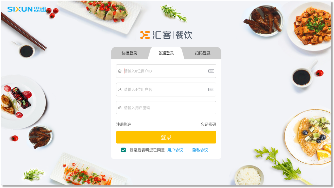 应用打开后选择:汇客餐饮产品登录。