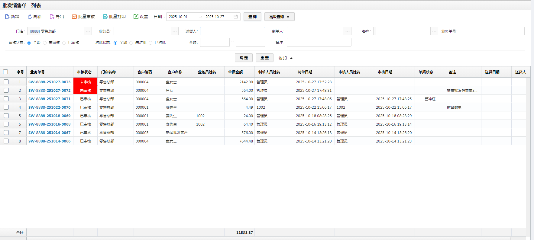 位置:【营运】-> 【批发】-> 【批发销售单】
