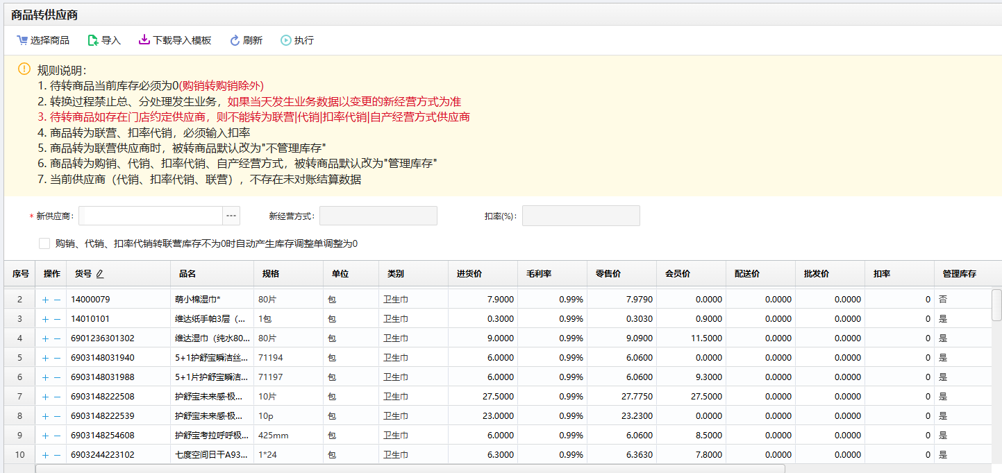 3.待转商品如存在门店约定供应商,则不能转为联营|自产经营方式供应商