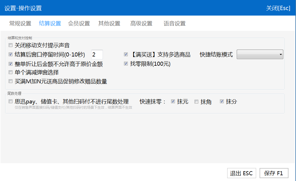 启用快速抹零功能:在结算界面其他操作中展示 抹元,抹角,抹分功能