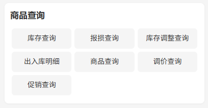 库存查询 报损查询 库存调整查询 出入库明细 商品查询 调价查询 促销查询