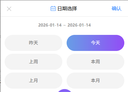 支持查询今天、昨天、本周、上周、本月、上月;可以自定义选择统计时间。