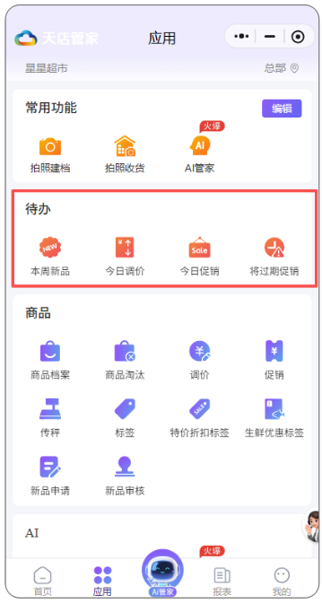 目录 搜索 天店星锐·学习指南天店星锐·Windows人工收银使用须知注册&前台登录界面使用销售商品查询会员结算退货其他微订单聚合外卖库存查询交易查询寄存功能收银对账系统功能帮助导航风格切换最小化收银对账设置POS快捷键打印 & 钱箱外设秤相关其他扫码付主题界面设置模板锁屏退出场景应用营业员使用流程挂单使用流程培训模式预设商品业务预包装使用流程AI使用流程类别限定显示收银流程常见咨询安装咨询登录咨询核销咨询交易时已经支付款项,但是软件未有流水记录结算咨询适配型号大全PC打印机型号适配PC计价秤支持型号客显支持型号叠加器支持型号Windows促销案例天店星锐·Windows自助收银使用须知登录使用基础设置收银流程支持打印机型号Windows自助收银促销案例天店星锐·Android POS收银使用须知注册&登录系统功能帮助导航风格切换收银对账设置POS快捷键打印&钱箱外设秤相关其他扫码付主题界面设置模板锁屏退出界面使用销售商品查询会员结算退货其他导航微订单聚合外卖库存查询交易查询收银对账适配型号大全安卓pos端·计价秤支持型号Android POS促销案例天店星锐·Android大屏自助收银下载 & 购买设备登录收银设置收银流程适配型号大全安卓自助大屏·计价秤支持型号Android自助大屏支持促销类型天店星锐·Android 手机收银下载 & 购买登录使用基础设置收银操作Android手机收银促销案例天店星锐·天店管家使用须知绑定&授权程序登录&入口购买账号首页应用常用功能待办本周新品今日调价今日促销将过期促销商品商品档案商品淘汰调价促销传称标签特价折扣标签生鲜优惠标签新品申请新品审核AI拍照建档拍照收货Ai 管家采购订货收货退货供应商历史采购价采购设置配送要货调拨调拨收货批发批发订单批发销售批发退货客户客户收款库存盘点快速盘点门店库存查询入库出库转仓单报损单成本调价单领用单会员会员档案会员开卡积分冲减积分兑换礼券会员设置会员类别积分规则充值优惠规则零售付款方式设置支付设置POS登记前台销售设置微管家商品管理营销管理订单管理报表查询财务收入支出系统用户管理 授权码标签设置消息推送AI管家报表常用功能营业分析营业分析毛利分析门店分析单笔分析商品排行类别销售商品毛利时段销售我的月报商品查询库存查询报损查询库存调整查询出入库明细商品查询调价查询促销查询异常查询负毛利查询滞销查询低库存高库存收银查询收银对账交易明细收银异常操作营业员销售查询订单查询批发订单汇总门店要货汇总采购订单汇总会员查询会员分析储值明细会员消费明细会员积分明细批发查询批发查询批发商品排行批发类别销售批发业务员查询批发账款供应商查询联营销售查询供应商销售供应商采购退货供应商账款我的故障报修多账号切换系统设置完善商户基本资料付费用户管理天店星锐·管店小程序使用须知工作台微管家商品管理营销管理订单管理报表查询应用待办商品AI采购配送批发库存会员分析报表营业分析营业分析毛利分析门店分析笔单分析商品排行类别销售商品毛利时段销售我的月报商品查询库存查询报损查询商品查询调价查询促销查询异常查询负毛利查询滞销查询低库存高库存收银查询收银对账交易明细查询收银异常操作营业员销售查询订单查询批发订单汇总门店要货汇总采购订单汇总会员查询会员分析储值明细批发查询批发查询批发商品排行批发类别销售批发业务员查询批发账款供应商查询联营销售查询供应商销售供应商采购退货供应商账款我的VIP增值服务多账号切换系统设置打印设置总部订货、收货快速查询商品门店库存收货快速引用商品生成调价单单据详情显示售价及售价金额批发/收货/调拨引用单据时自动读取数量电子海报市斤计价标签设置天店星锐·Android大屏自助收银(旧版-不再维护)支持设备支付设置程序安装收银登录&设置收银流程支持促销类型&案例 暂无相关搜索结果! 本文档使用 MinDoc 发布 待办 待办 本周新品 今日调价 今日促销 将过期促销 保质期预警 如图所示 文档更新时间: 2026-01-19 07:24 作者:sundl