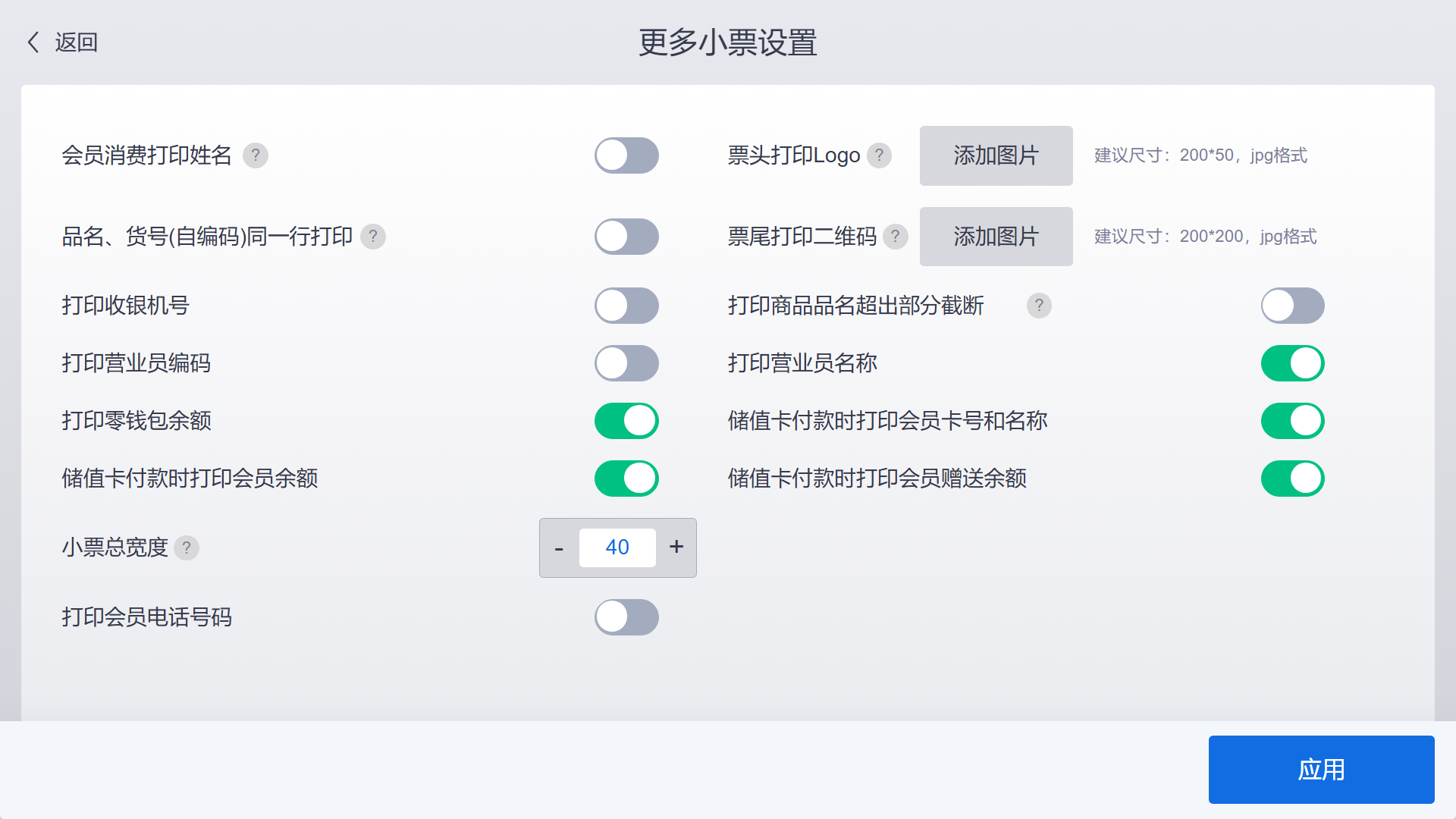 更多小票设置