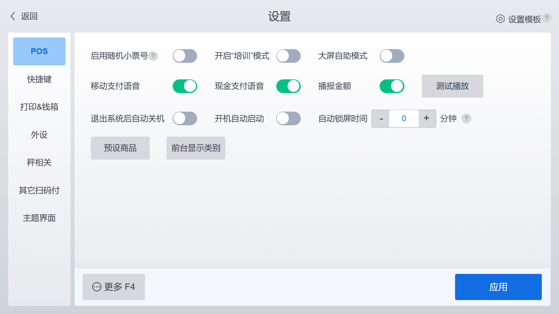 • 现金支付语音:启用时,使用现金支付时会进行语音播报,反之则现金支付时没有声音播报