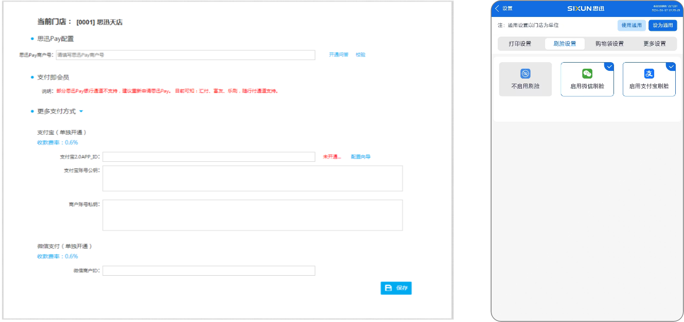 (1)如需使用支付宝刷脸,则需配置官方支付宝帐号;