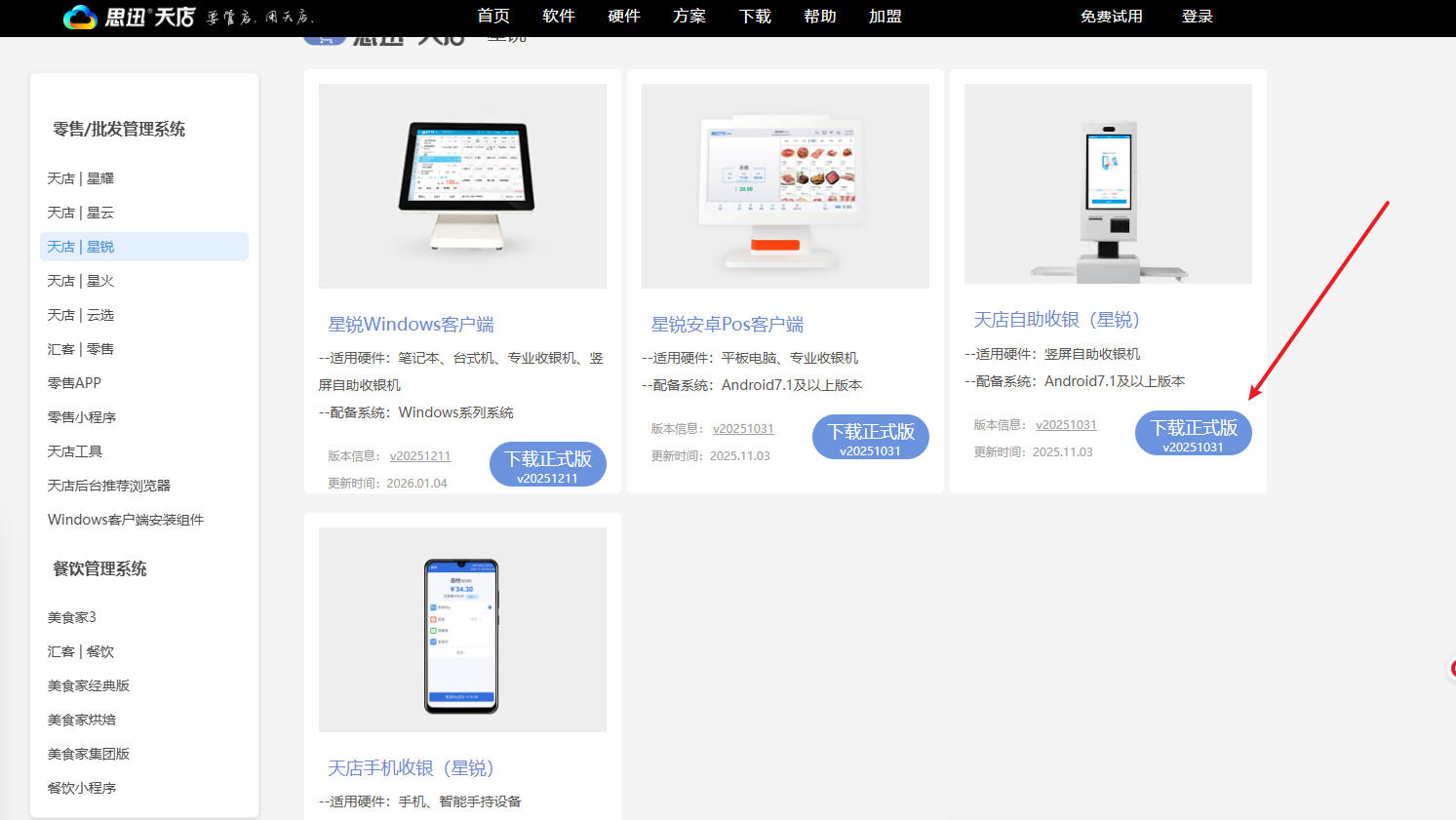 下载:天店官网 -〖下载〗-〖天店|星锐〗-〖天店自助收银(星锐)〗 进行下载操作
