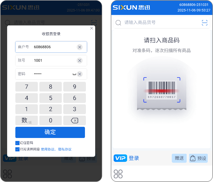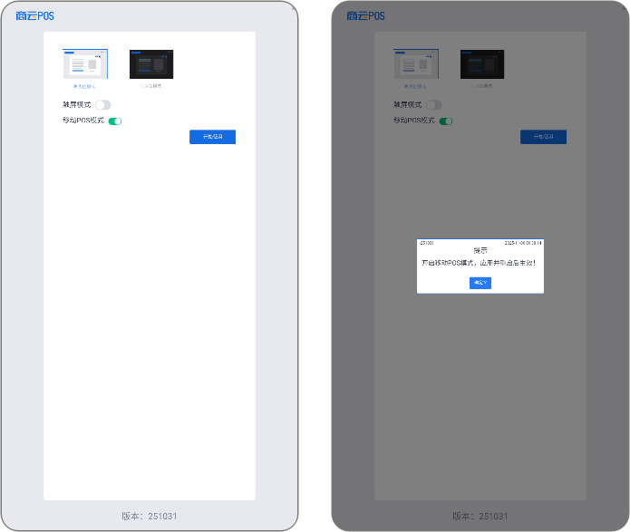 首次登录,需要勾选 移动POS模式 并且重新登录软件;进行手机收银APP 端操作。