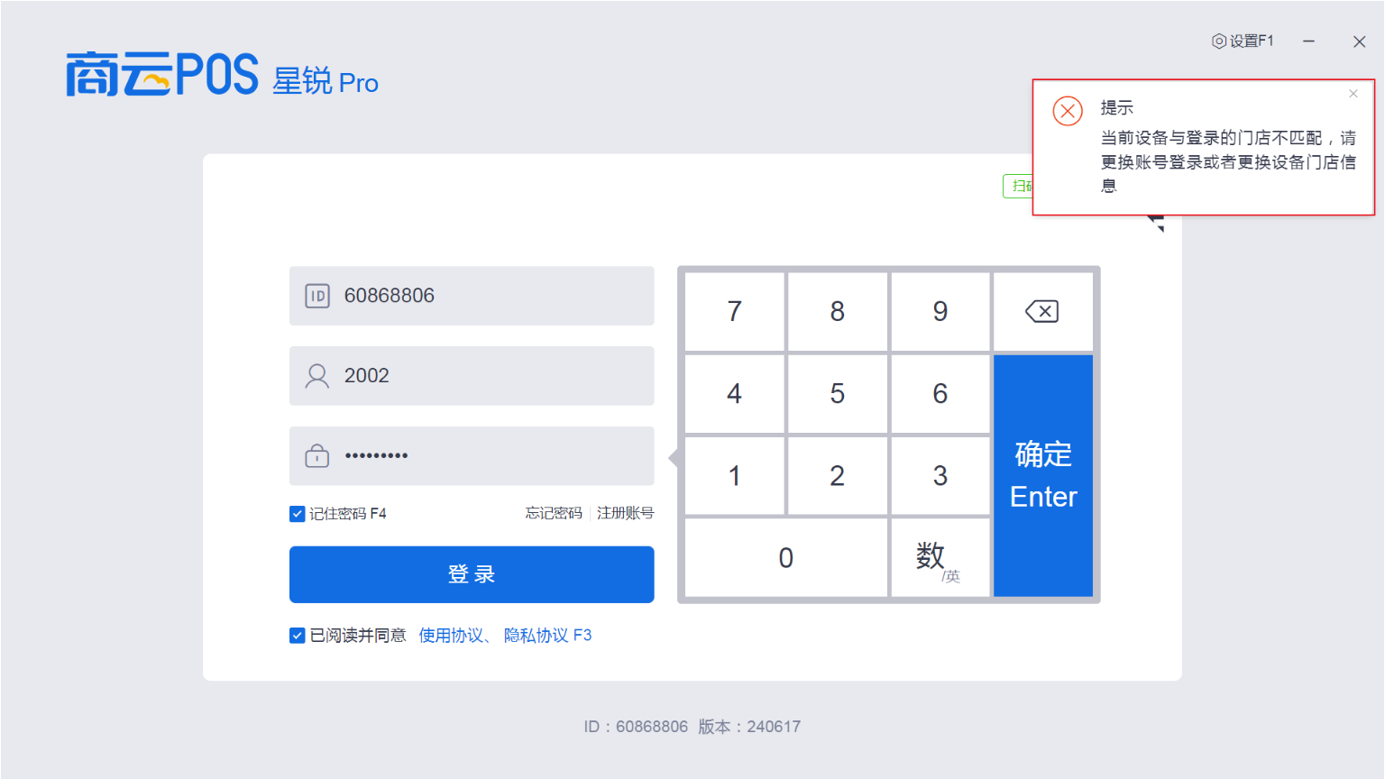 Q3:当前设备与登录的门店不匹配