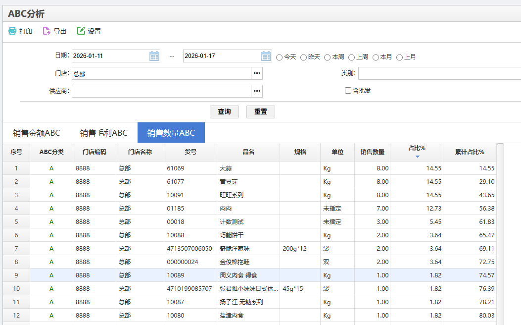 位置:【决策】-> 【分析】-> 【ABC分析】