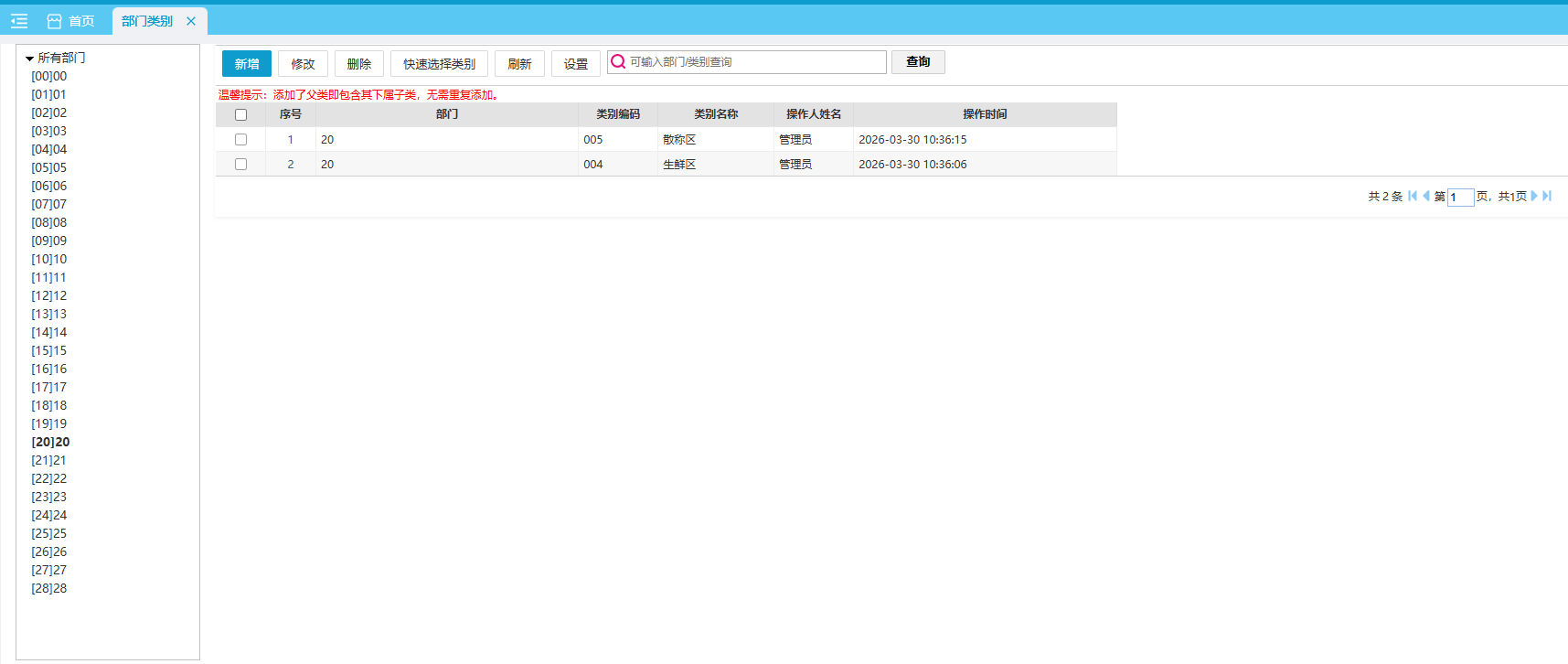 先点击左侧部门再进行快速选择类别