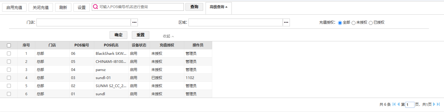 为前台收银机配置储值功能权限,通过授权流程激活设备,确保会员在收银时能够顺利使用他们的储值进行充值 位置:【会员】-> 【会员设置】-> 【POS充值授权】 如图所示 操作说明: 在后台管理系统中,为选定的POS机号启用充值功能时,只需选择相应的设备标识,然后点击【启用充值】按钮,系统会提示进行授权确认,完成验证后即表示设备已成功授权并可以使用。 文档更新时间: 2026-03-23 02:53 作者:zhangyi