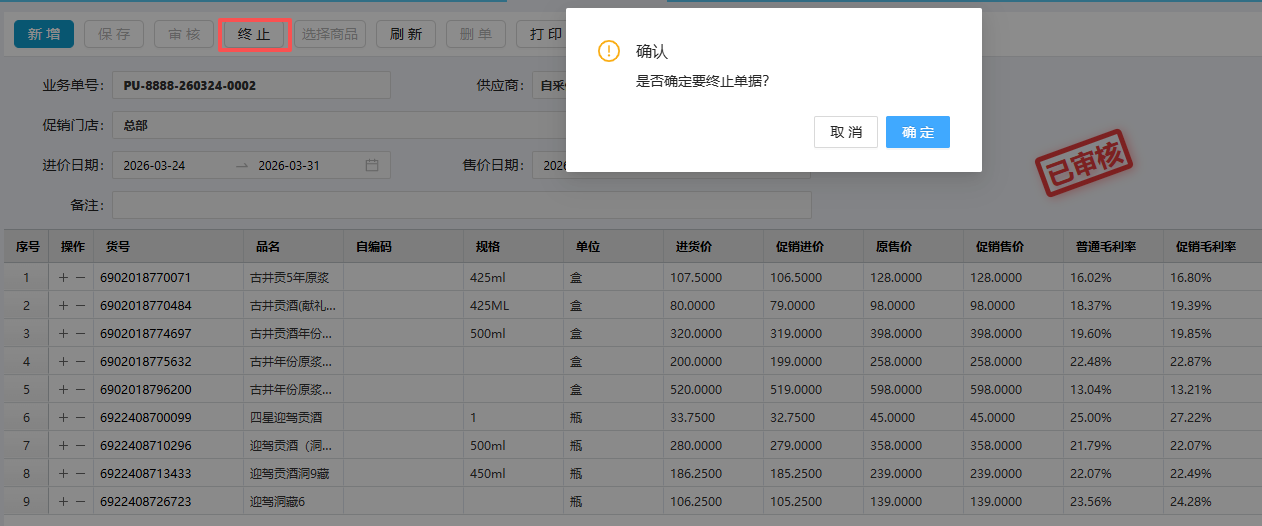 促销进价单终止