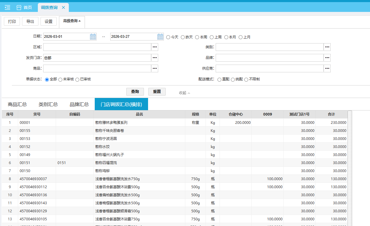 门店调拨汇总(横排)