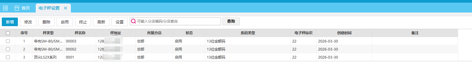 位置:【营运】-> 【生鲜】-> 【传秤业务】-> 【电子秤设置】