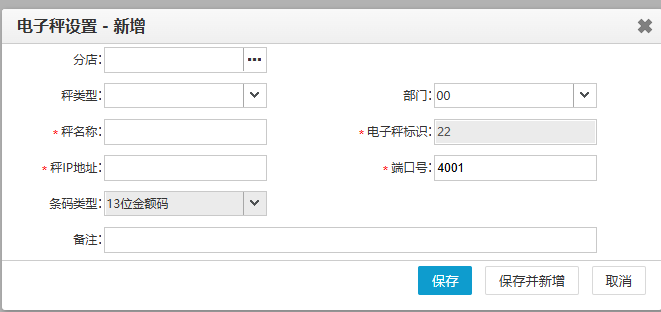 秤类型:指电子秤生产厂家及电子秤型号,目前支持大华、顶尖系列等条码秤;