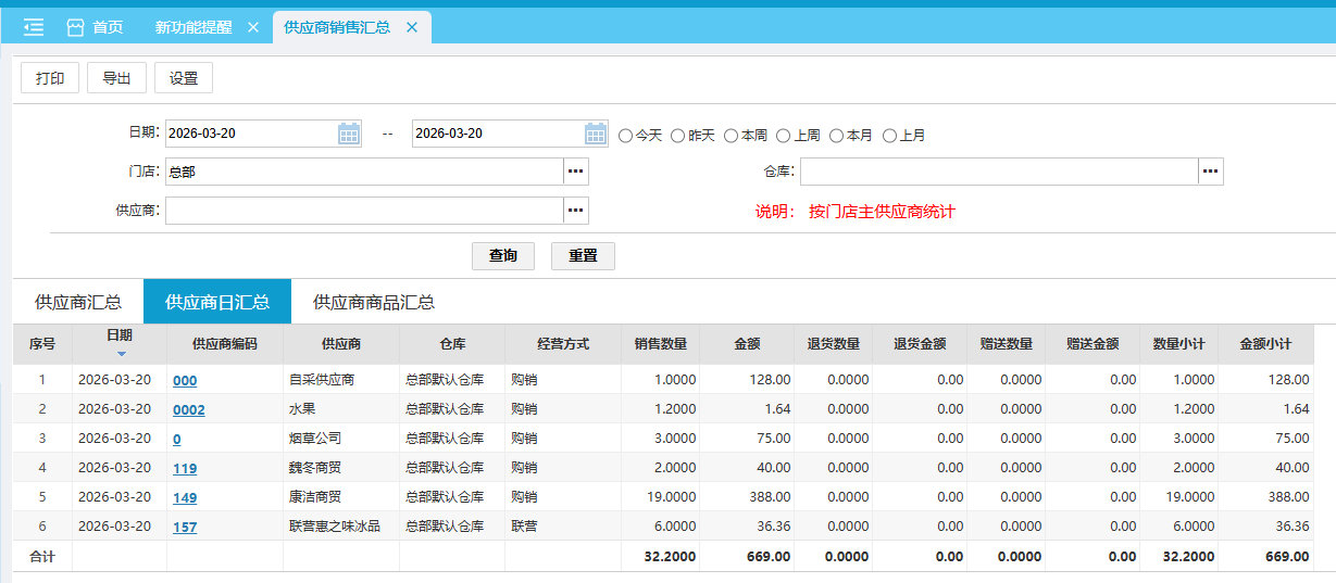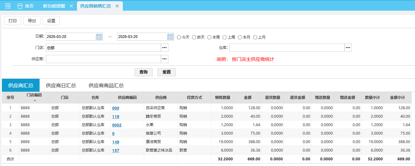 位置:【营运】-> 【卖场】-> 【销售汇总】