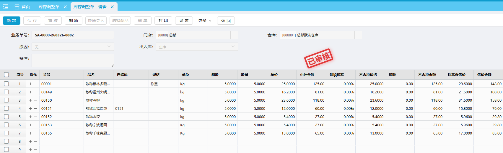 商品报损后,库存调整单可对商品库存进行调整,方便维护商品库存。