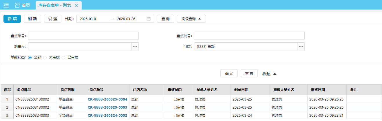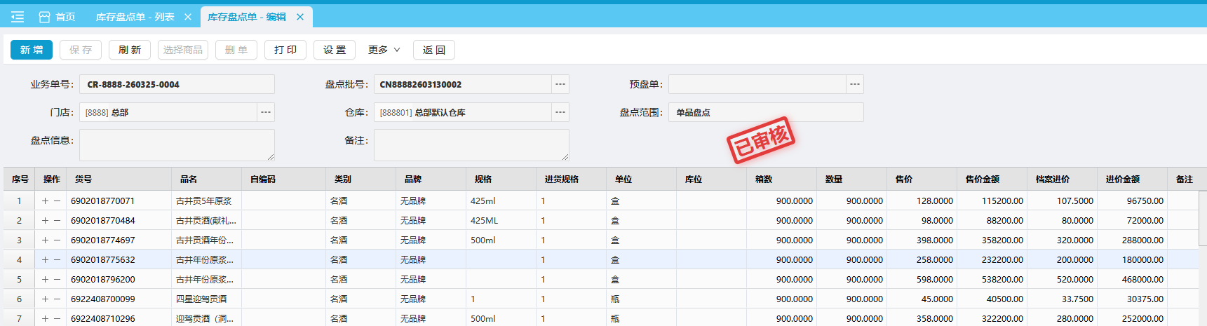 库存盘点单是用于商品实际库存盘点的数据进行记录。