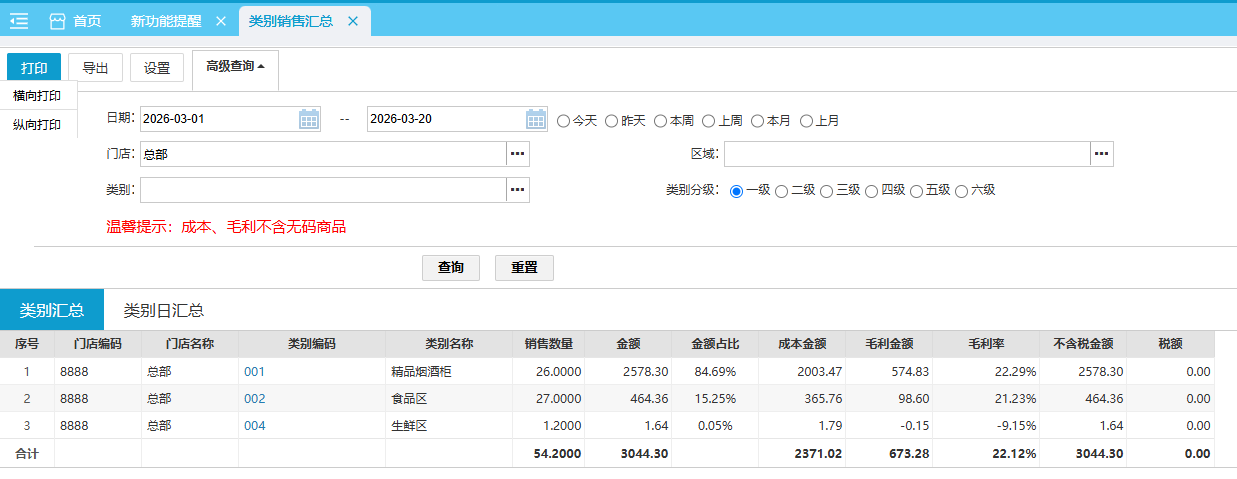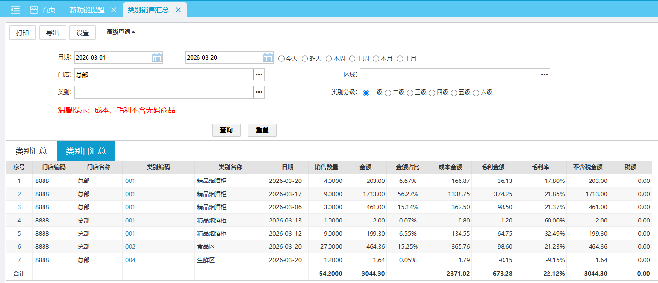 位置:【营运】-> 【卖场】-> 【销售汇总】