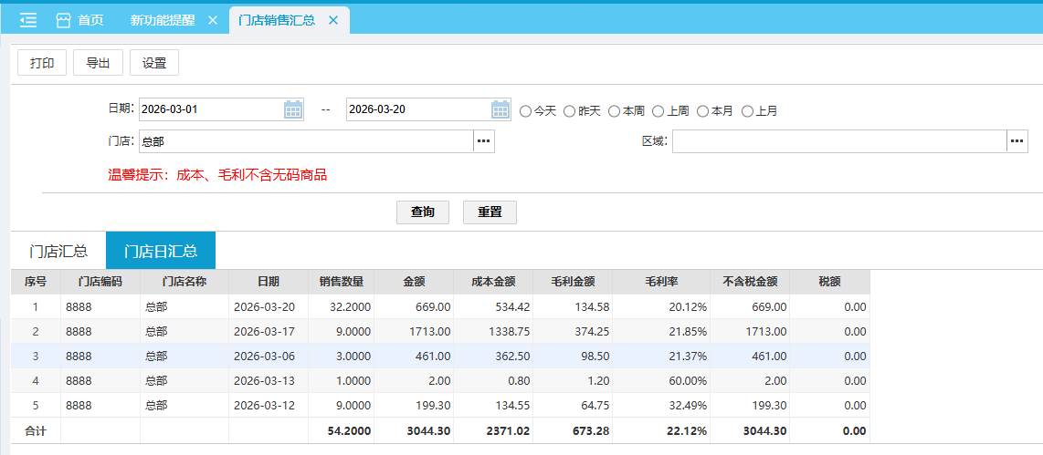 门店日汇总