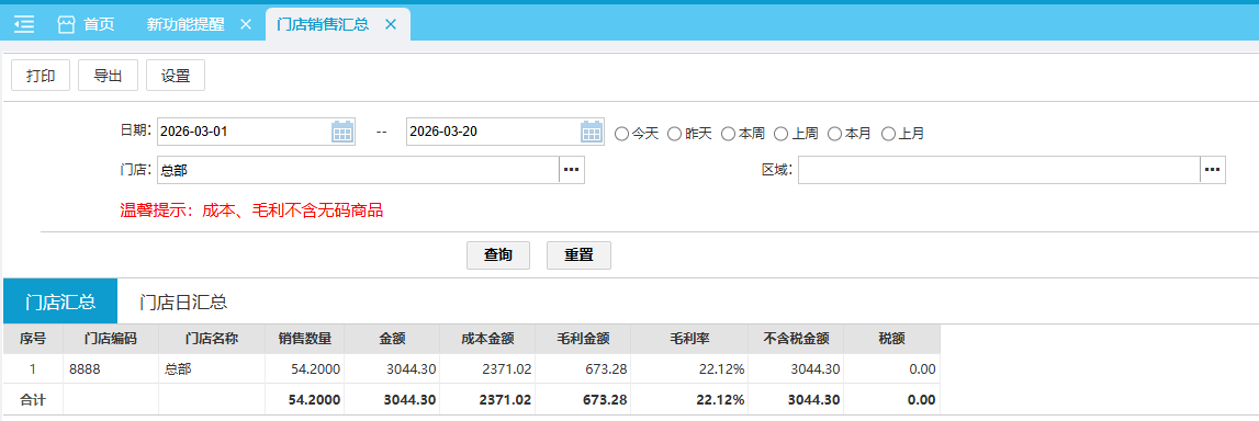 位置:【营运】-> 【卖场】-> 【销售汇总】