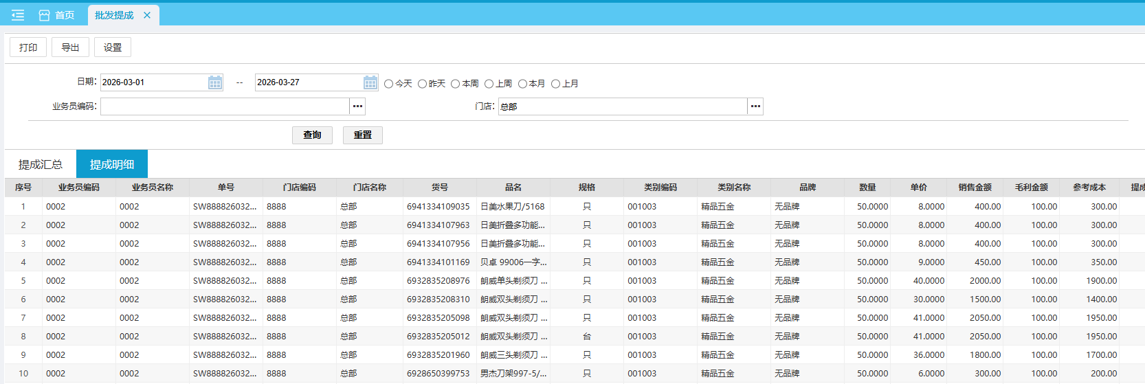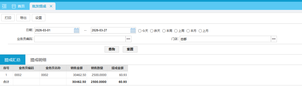 位置:【营运】-> 【批发】-> 【批发查询】-> 【批发提成】