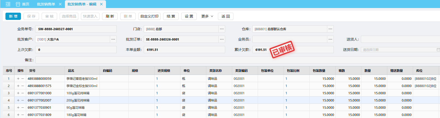 批发销售单- 明细