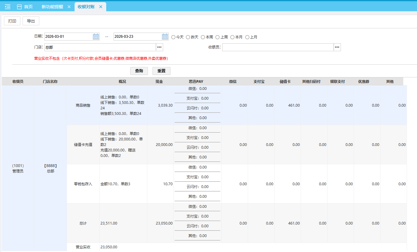 — 思迅pay:支付宝、微信、云闪付、其他(收银流水付款凭证缺失支付宝/微信/云闪付)