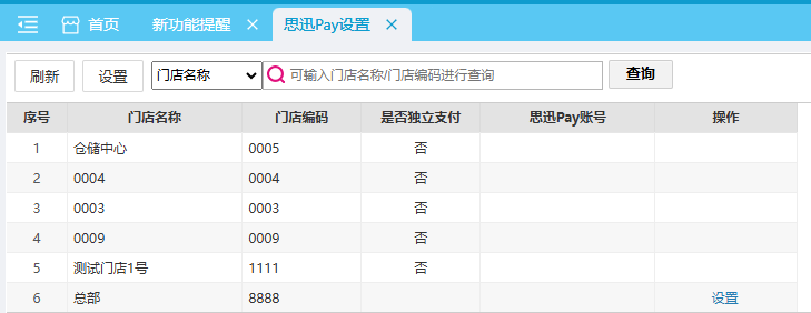 如果独立支付为否,则默认跟随总部8888的思迅pay设置;如果独立支付为是,则支付单独设置。