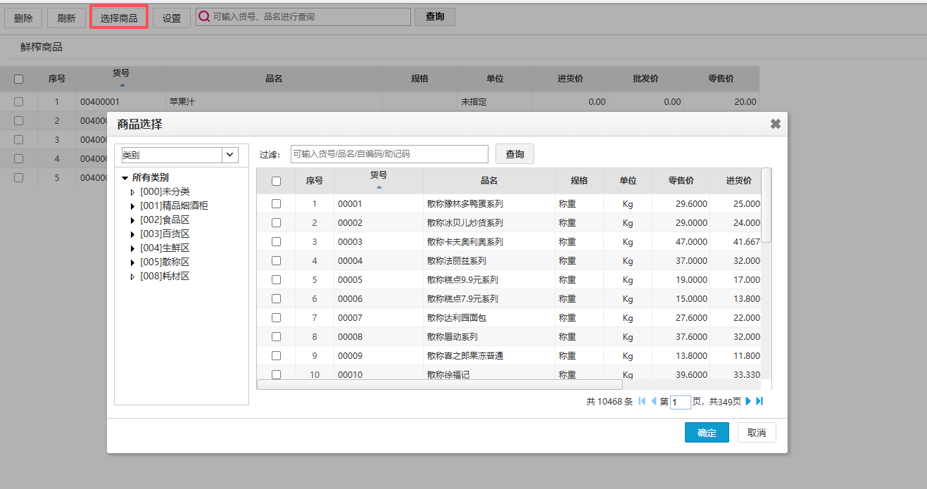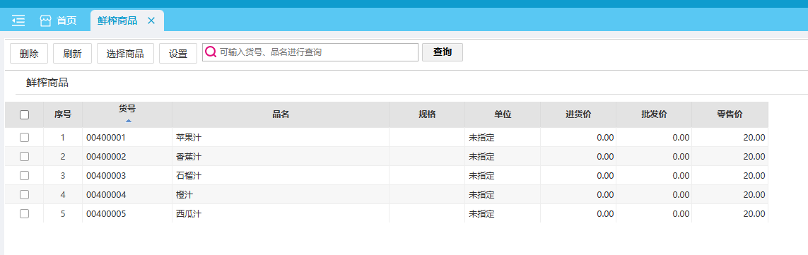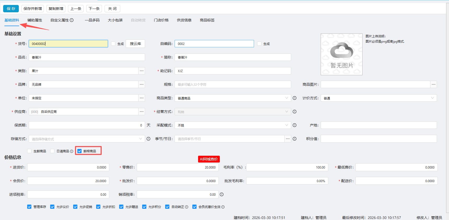 位置: 【营运】-> 【生鲜】-> 【基础资料】-> 【鲜榨商品】