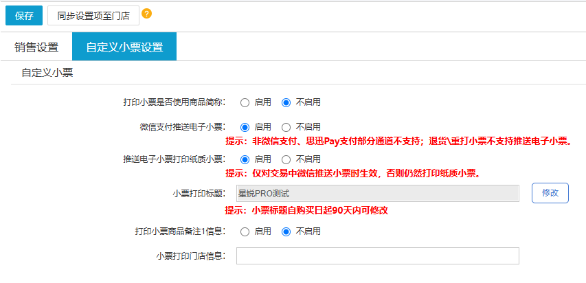 (3)非微信支付、部分思迅pay银行通道不支持电子推送。小票打印门店信息: