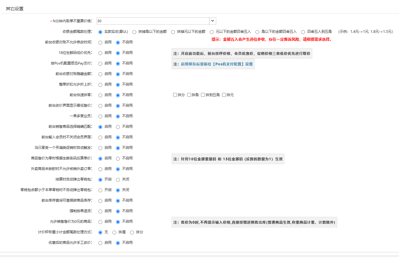 相关使用了解 点击可跳转>>>前台快速抹零: 启用 不启用 抹分 抹角 抹到五角 抹元